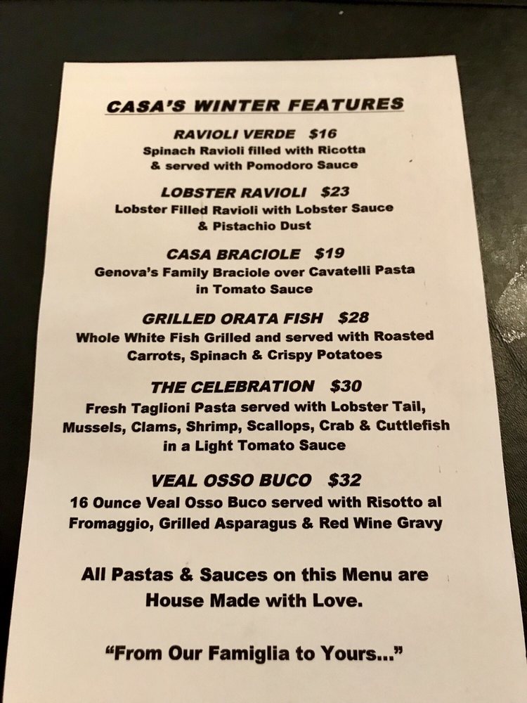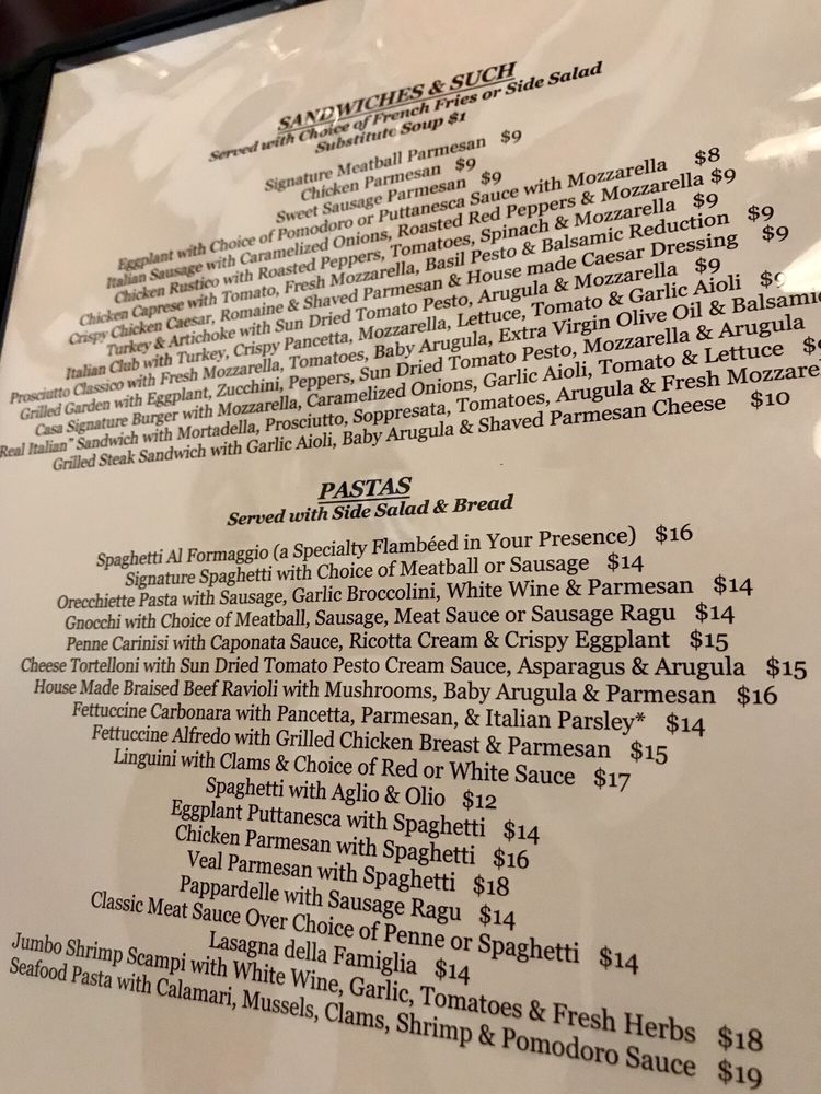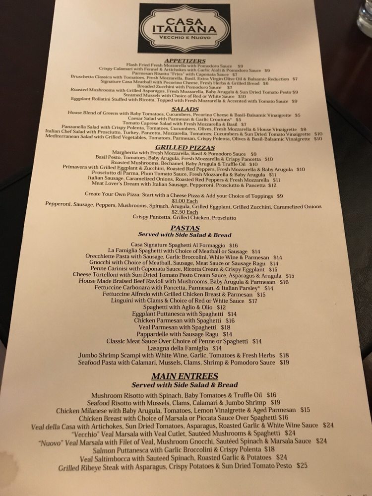 Casa Italiana, located in Richmond, VA, offers a diverse menu of Italian cuisine, including grilled pizzas, appetizers like fried calamari and bruschetta, and salads like Caesar and Mediterranean. The restaurant provides a casual, family-friendly atmosphere with outdoor seating and a full bar. Customers rave about the excellent service and quality of the food. Highlights include the flavorful Basil Pesto Pizza, tender Grilled Octopus, and creamy Seafood Risotto. The ambiance is inviting, with Italian music playing softly in the background. Although some dishes like the Shrimp Scampi and Chicken Piccata received mixed reviews for being slightly bland or overcooked, the attentive waitstaff and overall dining experience at Casa Italiana make it a standout choice for Italian dining in Richmond. Visitors can enjoy a variety of options, from hearty pizzas to seafood classics, making it a perfect destination for any occasion.